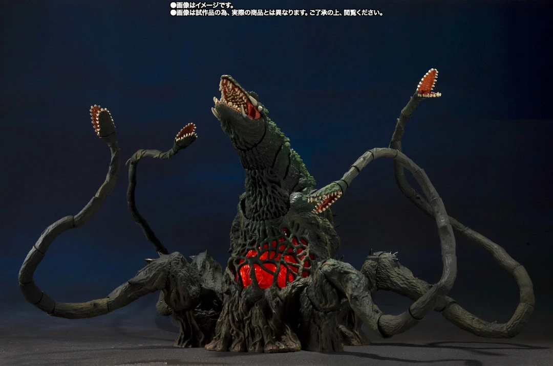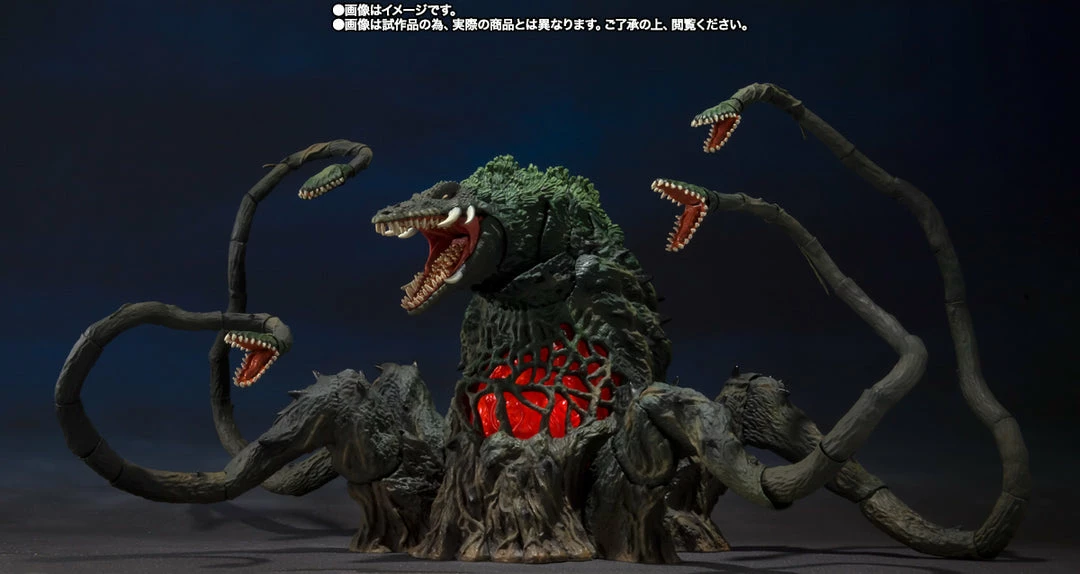 Biollante is back by popular demand! First debuting in 2013, Bandai is excited to present the new Biollante in this special color version. The Bandai S.H.MonsterArts Biollante figure is highly detailed and was sculpted by the famous Fuyuki Shinada, who brought Biollante to life on screen. The best part? This figure features a special light up on feature on his chest that is able to change colors with a flip of a switch!