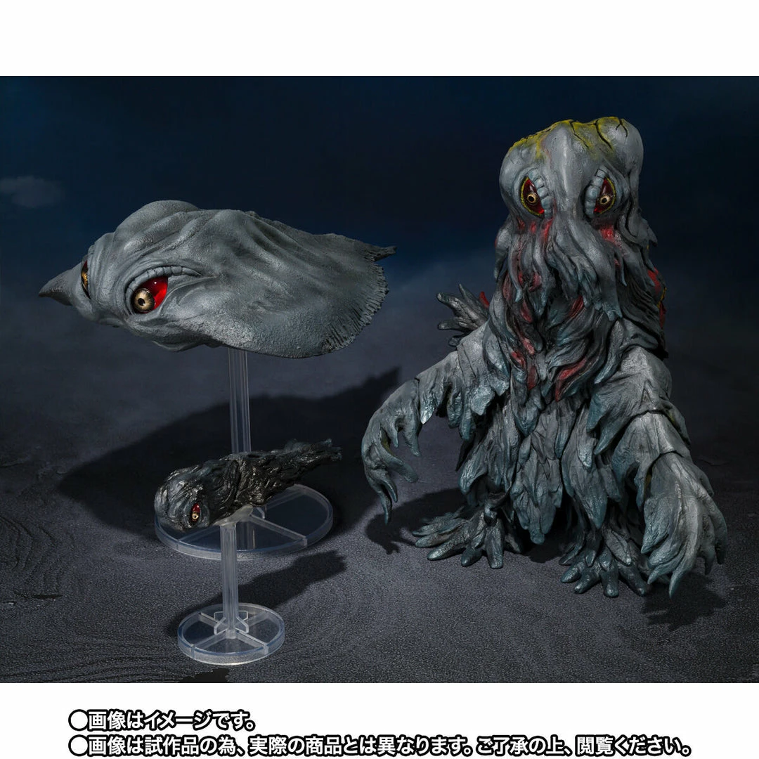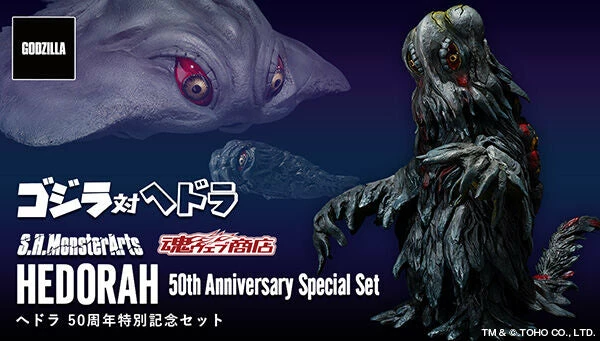 From the 1971 Godzilla vs. Hedorah film comes an S.H.MonsterArts Hedorah 50th-anniversary special figure set! The set features three figures showcasing the Smog Monster in its adult form, its flying form, and its swimming form.