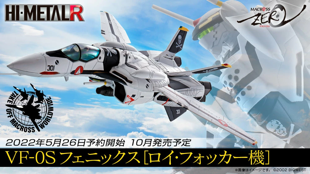 From the 2002 direct-to-video anime “Macross Zero,” Roy Focker’s VF-0S Phoenix joins the Hi-Metal R series! Featuring a full transformation into all three modes: Fighter, Gerwalk, and Battloid, it also includes FAST packs and air-to-air missiles. Decorated with Focker’s personal colors and skull marking!