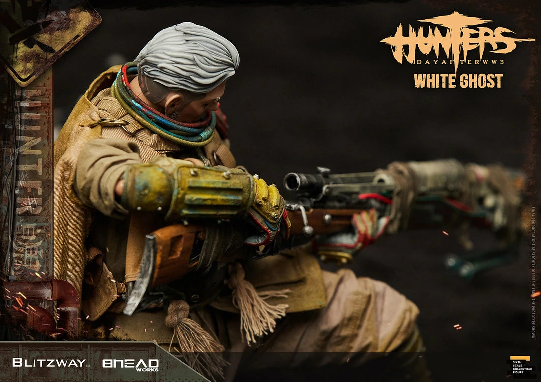 Blitzway is extremely thrilled to officially launch the #4 character of BHEADworks’ original design figures ‘White Ghost’ from Hunters: Day After WWIII. This newly developed original design features an intricate head sculpt and make-up, realistic equipment, sophisticatedly tailored and designed outfits, over 30 points of articulation, and a highly detailed polystone diorama base.