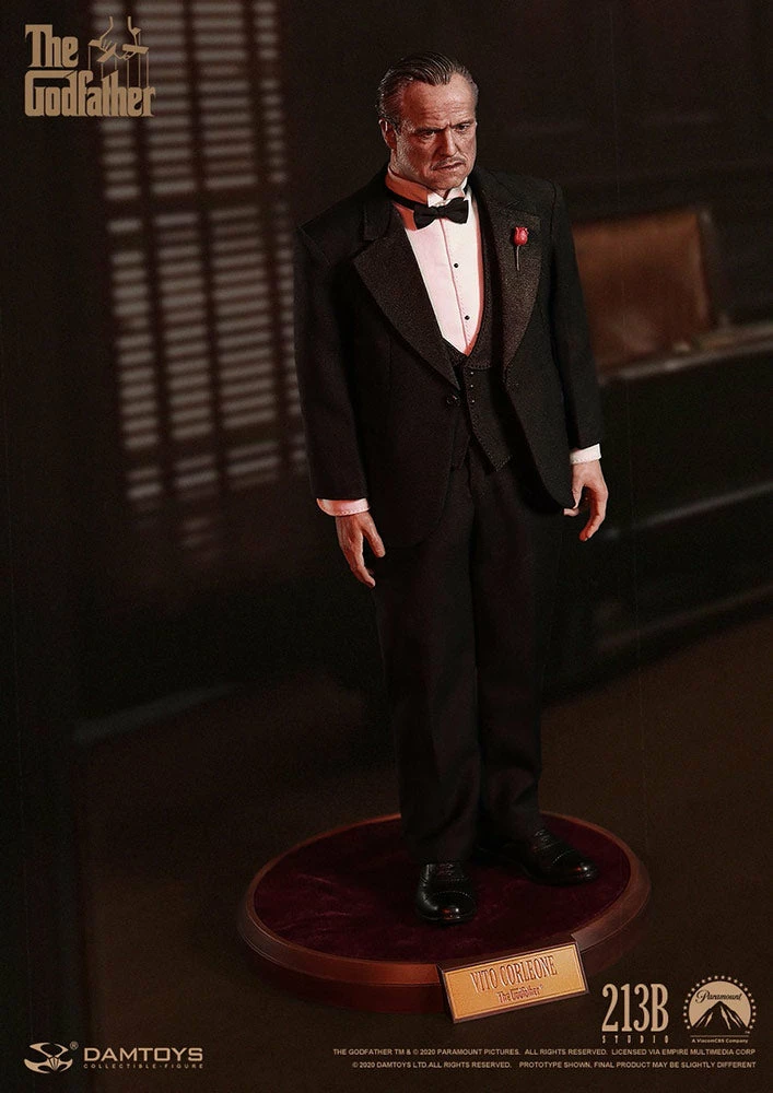 Damtoys is proud to announce The Godfather Vito Corleone Sixth Collectible Figure, the movie protagonist as portrayed by Marlon Brando. The Godfather is a classic movie – directed by the famous Francis Coppola; winner of the 45th Oscars for Best Picture, Best Actor, and Best Adapted Screenplay; ranked no. 2 by the American Film Institute in 100 Years… 100 Movies 2017. Damtoys has transformed Vito Corleone’s classic image into a 1:6 scale Collectible Figure. The head sculpt and costume fully demonstrate the latest production technology and faithfully recreate the character’s likeness. With the rich accessories and highly poseable body (more than 30 points of articulation), collectors can pose him as in the movie.