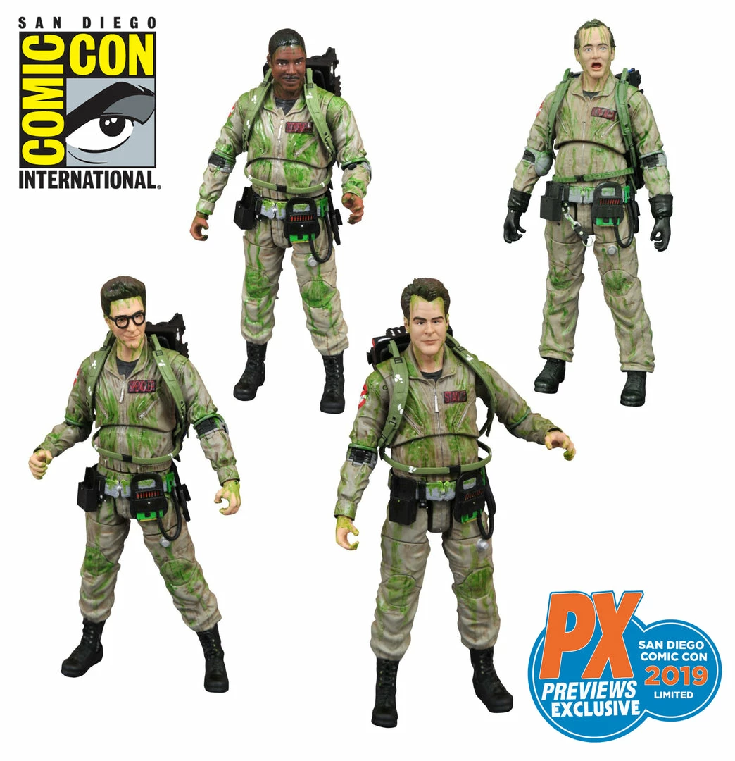 They feel so funky! To celebrate the 35th anniversary of the classic horror-comedy Ghostbusters, Diamond Select Toys has created the ultimate movie collectible – the slimed action figure 4-pack! Featuring Peter, Ray, Egon and Winston in their slimed appearances, each action figure features approximately 16 points of articulation, as well as interchangeable hands, removable walkie-talkies and more. Packaged in a full-color window box with a fifth-panel door, this set is limited to only 1984 pieces! Designed by Yuri Tming, sculpted by Gentle Giant Studios.Â