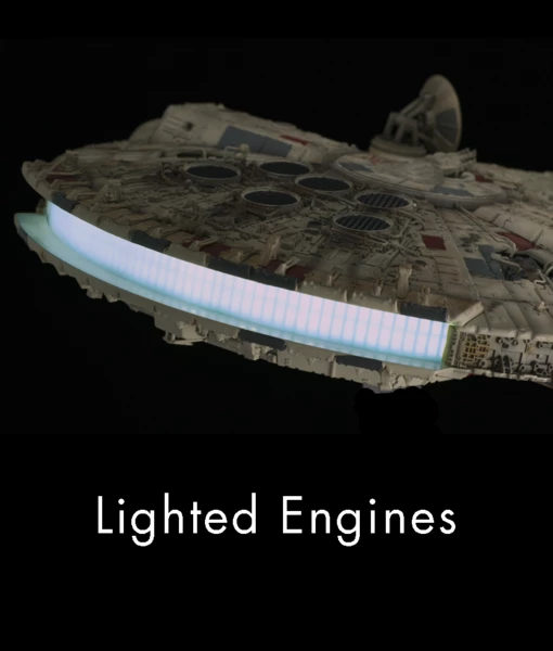 The Falcon looks like any other Corellian YT-1300 light freighter with her saucer-shaped primary hull, forward mounted cargo-gripping mandibles, and starboard mounted offset cylindrical cockpit. But because of “a lot of special modifications” made by Han Solo, beneath the peeling paintwork and buckled and missing hull plates, this vessel hides many powerful secrets, giving it the ability to outrun not only the local bulk cruisers, but the Imperial Starships, as well.