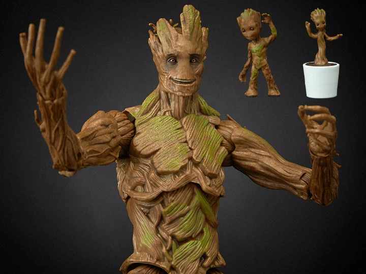 Groot gets a growth sprout – er, spurt – with this Groot Evolution 3-pack from the Marvel Legends Series, featuring 3 Groot figures in 3 different sizes. Imagine giving the galaxy something to root for with the 9-inch Groot figure, modeled after Groot in his adult form. Then, pretend to meet Groot as just a sapling with the included 2 1-inch Groot figures, which stand as reminders that inside every tree there is…an even smaller tree.