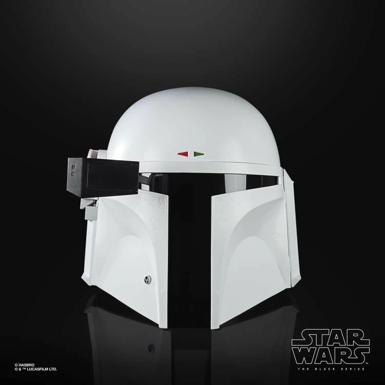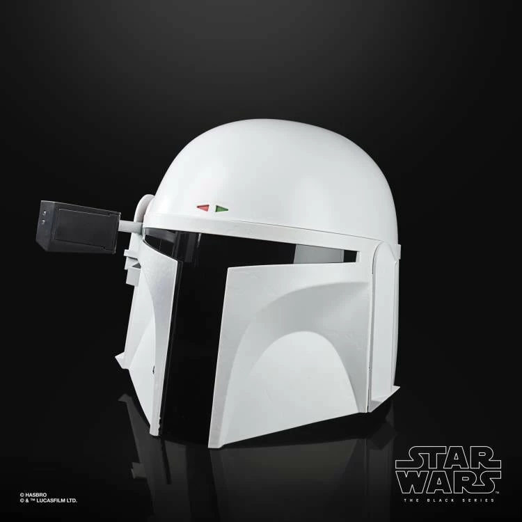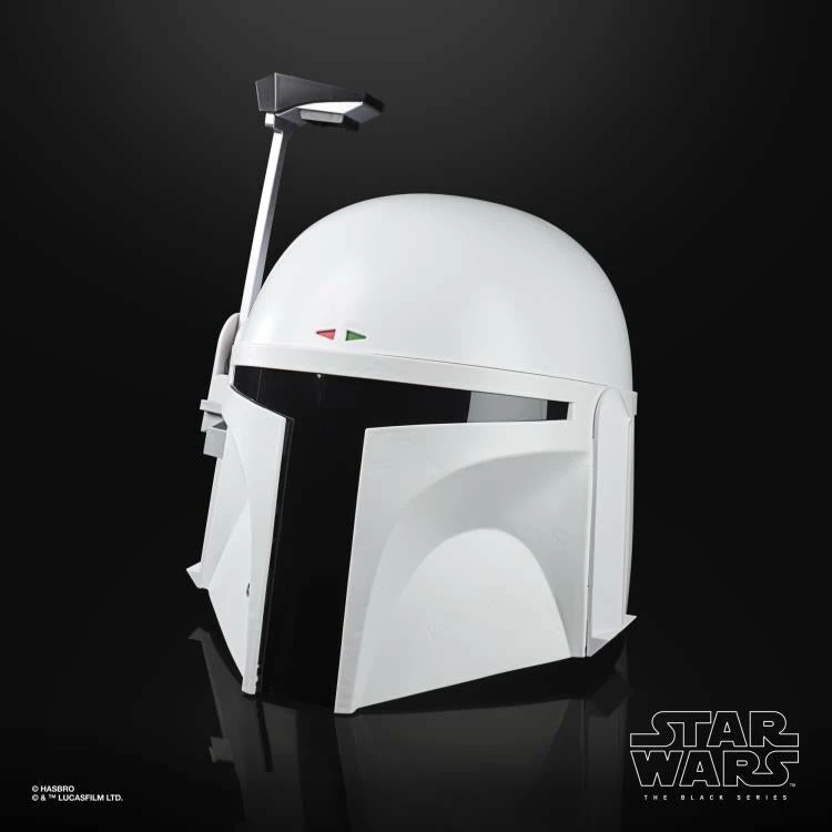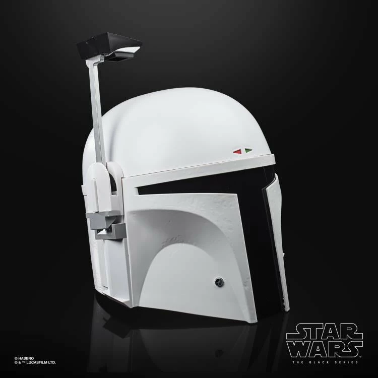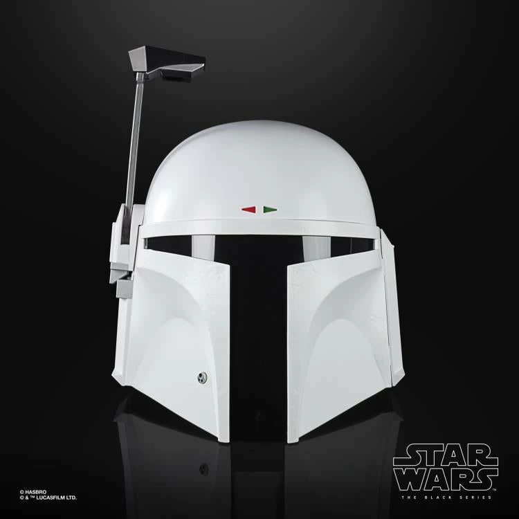 Featuring a flip-down rangefinder with flashing LED lights and an illuminated heads-up display (HUD), fans can imagine what it was like for the famous bounty hunter to suit up for galactic action in his all-white “Super Strormtrooper” armor!
