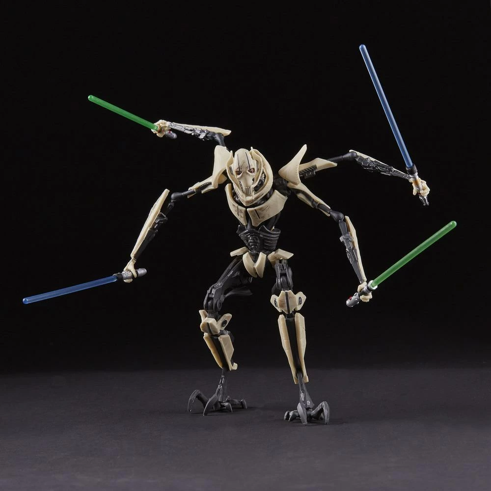 This 6 inch scale General Grievous figure is carefully detailed to look like the character from Star Wars: Revenge of the Sith and features premium detail and multiple points of articulation. This figure includes his 4 iconic lightsabers, a blaster pistol and fabric cape.