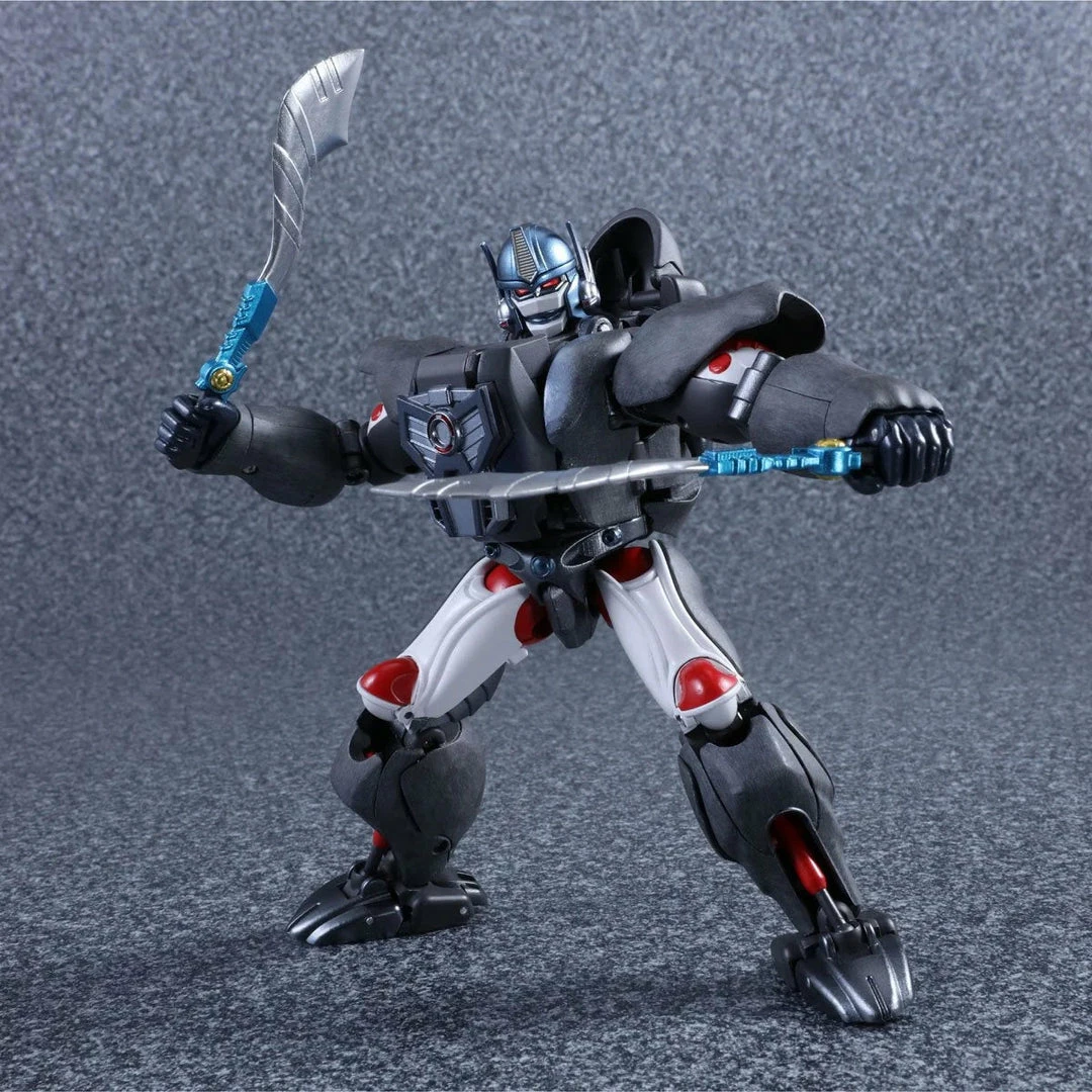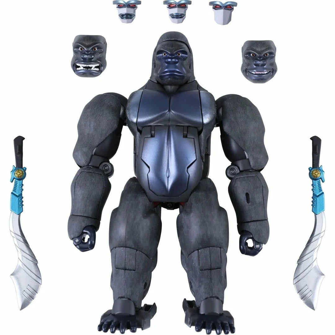 This articulated figure transforms from robot to beast; joints are provided to allow him to stand on all fours in beast mode. Optimus Primal includes 2 Cyber Blades and 6 different face plates: 3 for beast mode and 3 for robot mode.
