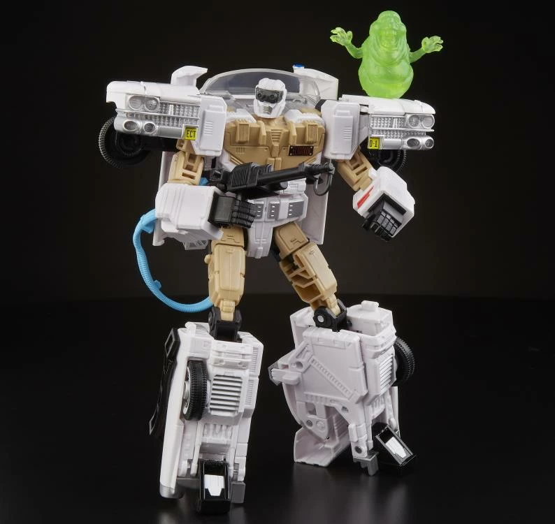 Discover how these worlds collide in this Transformers-Ghostbusters mash-up pack! The iconic Ecto-1 Cadillac from the 1984 Ghostbusters movie is now a Transformers robot — a converting Paranormal Investigator, called Ectotron!