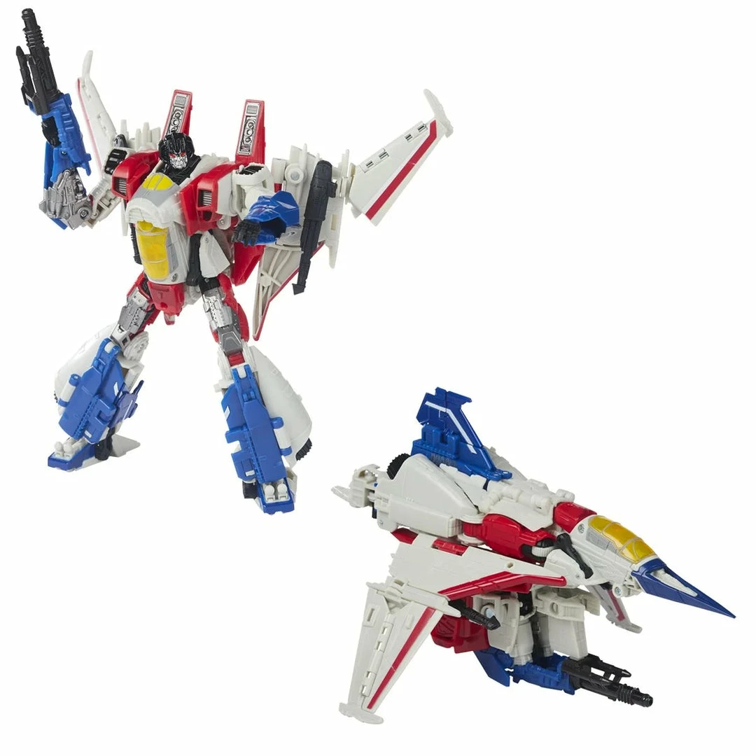 This Studio Series 72 Voyager Class Transformers: Bumblebee-inspired Starscream figure converts from robot to tetrajet mode in 31 steps. Remove backdrop to showcase Starscream in the Cybertron Falls scene. In the Cybertron Falls scene from Transformers: Bumblebee, the Autobot resistance retreats to escape the planet as Cybertron falls under Decepticon control. Starscream and the seekers destroy the Autobot launchpad in an effort the prevent their escape. Pose the figure out with the included Null Ray accessories and imagine recreating this classic movie moment!