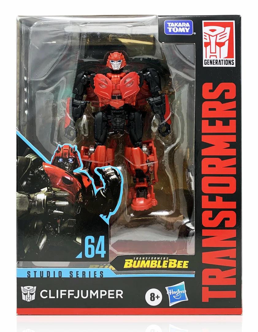 This Studio Series 64 Deluxe Class Cliffjumper figure features vivid, movie-inspired deco and converts from robot to car mode in 20 steps. Remove backdrop to showcase Cliffjumper in the Cybertron Falls scene.