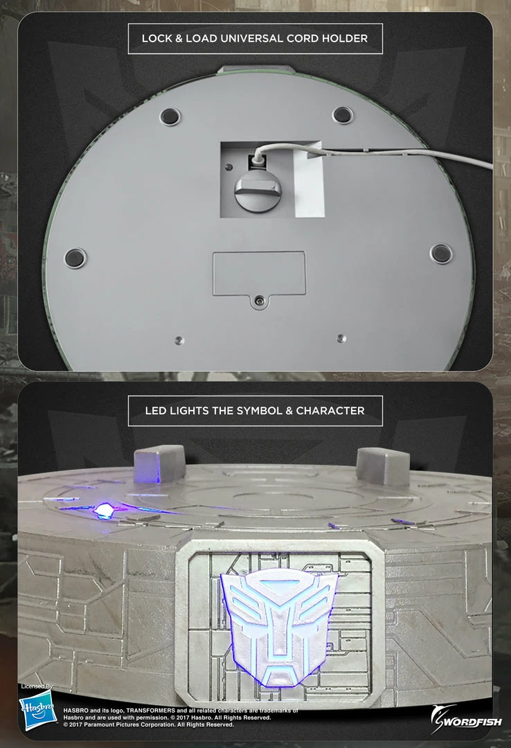 Featuring highly-detailed sculpt and paint, the Optimus Prime Phone Dock Statue gives fans a centerpiece to display at home or in the office, that will conveniently charge any mobile device with up to a 6-inch screen size. The easy-to-use load & lock docking mechanism can fit nearly all Micro USB and Apple Lightning plug shapes and sizes. Also included are LED lights to spotlight Optimus Prime and the Autobotsymbol on the front of the base!