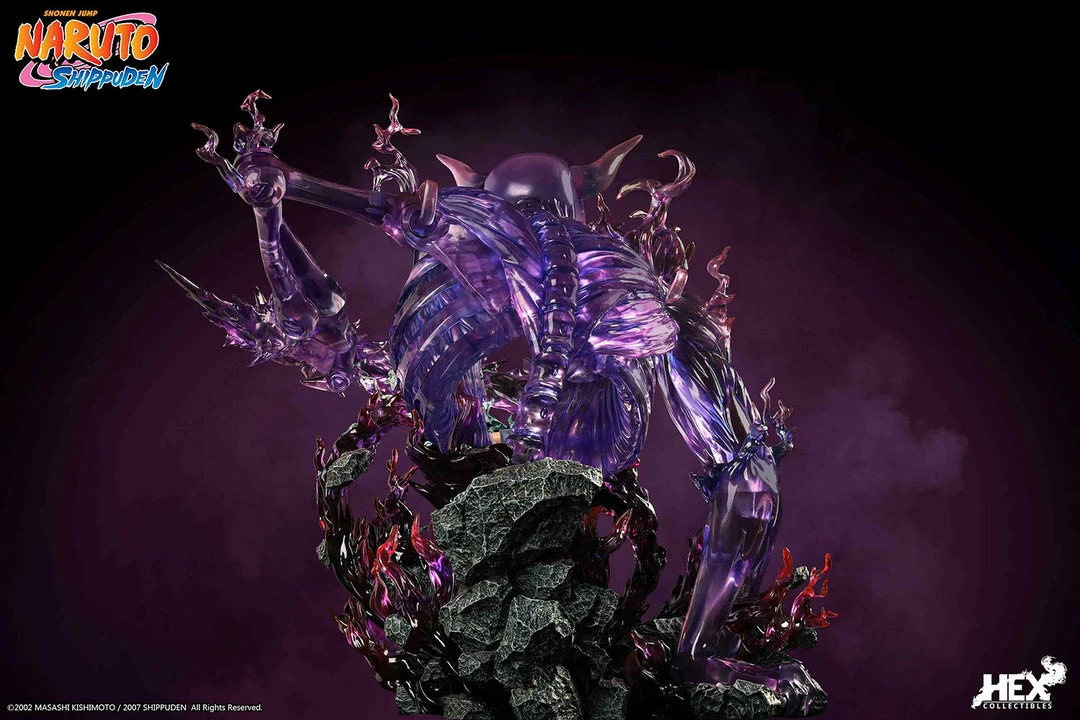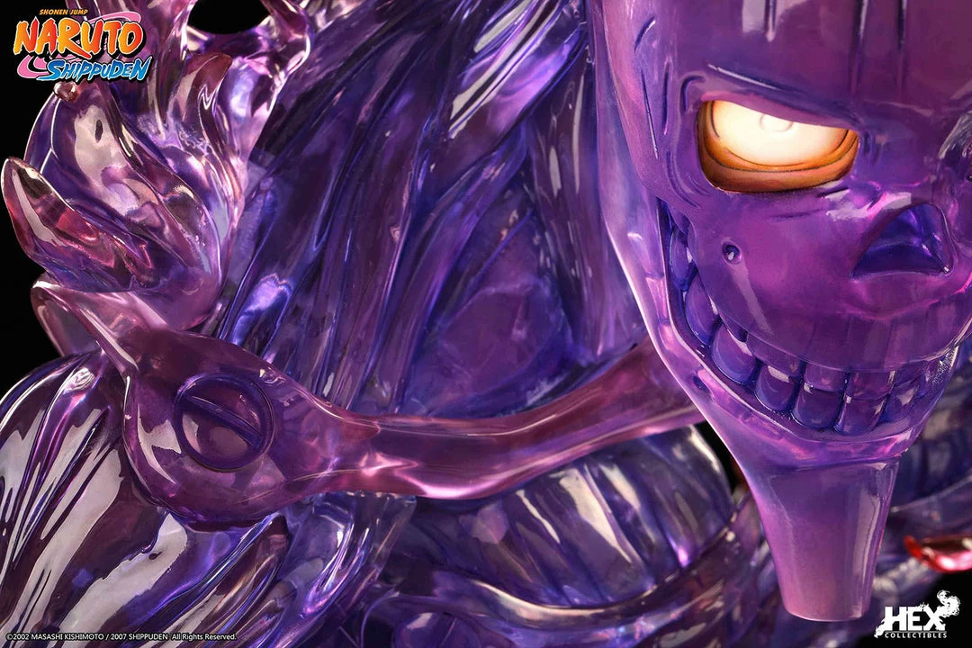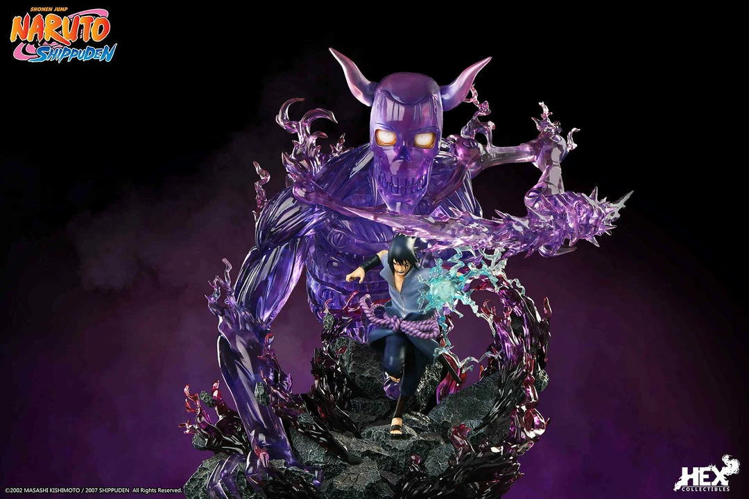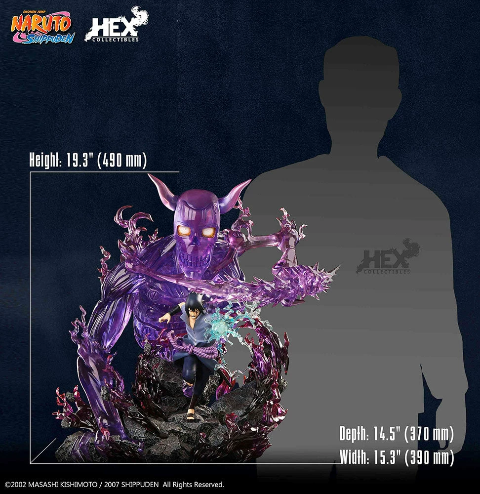 Sideshow and HEX Collectibles present the Uchiha Sasuke 1:8 scale Statue. The statue measures 19.3″ tall. From the scene where Uchiha Sasuke created chaos and caught up with Shimura Danzo, the “Sixth Hokage” who was running away after 4th Five Kage Summit. After Shimura Danzo told the truth about the death of his elder brother Uchiha Itachi, the angry Uchiha Sasuke used his newly evolved Mangekyo Sharingan to show for the first time. The scene of the death battle between the first form of unique Kekkei Genkai pupil “Susano’o” of Uchiha family and Shimura Danzo.