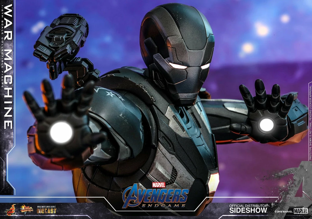 Sideshow and Hot Toys present the War Machine Sixth Scale Collectible Figure from Avengers: Endgame. Specially crafted in Diecast material, this true-to-movie collectible figure is beautifully designed with impressive detailing based on the appearance of Don Cheadle as James Rhodes/War Machine in Avengers: Endgame. The weaponized War Machine figure with highly noticeable visual upgrade features a newly painted helmeted head sculpt and a helmet head with LED light-up function, armor suits painted in grayish black and silver with white decals, LED light-up Arc Reactor on chest and repuslors on palms, an articulated back-mounted machine gun, and a specially designed movie themed figure stand!