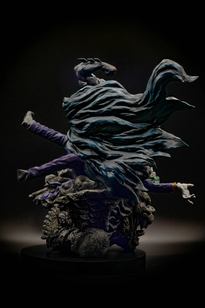 Justice and chaos clash in this amazing first release by Koto Inc. and Zerostar Studios! Angered by the Joker’s crimes, the caped crusader Batman pursues him in his unrelenting fury. Here, he grasps his nemesis by the throat, his fist raised and ready to strike out the evil from Gotham City once and for all. Symbolizing his chaotic and often nonsensical nature, the Joker breaks out in unrestrained laughter.