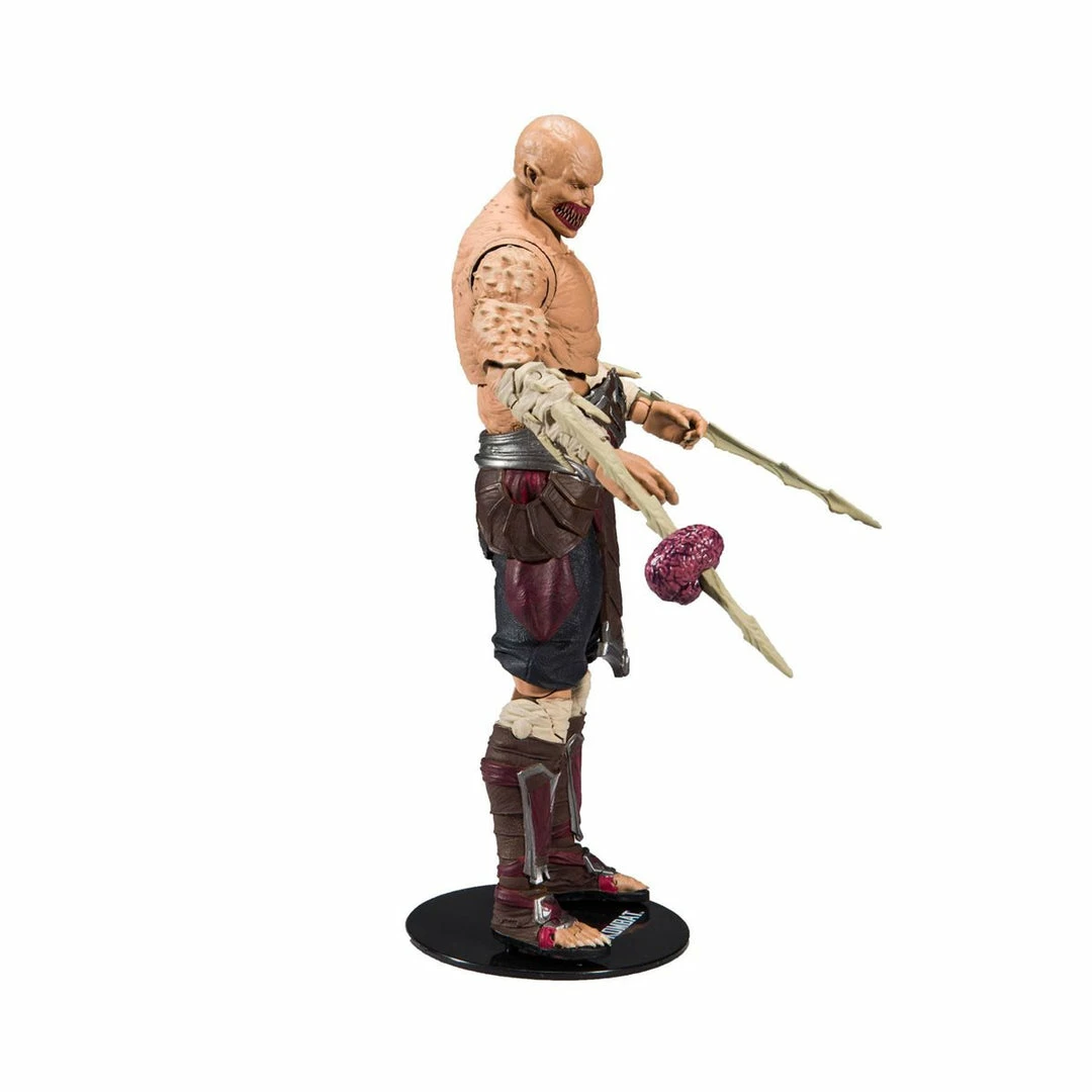 Mortal Kombat Series 3 Baraka 7-Inch Action Figure features the War Chief of the nomadic Tarkatan tribe, a carnivorous people considered subhuman by the Outworld Empire. Baraka dutifully serves Shao Kahn to preserve his tribe’s way of life, who roam the harsh Wastelands, meat carts in tow, consuming everything and everyone in their path. The incredibly detailed 7-inch scale figure based off the Mortal Kombat Franchise. Baraka is featured in his Tarkatan Beefcake skin as seen in Mortal Kombat 11. Designed with ultra articulation with up to 22 moving parts for full range of posing. The figure includes two Tarkatan Blades, a slide-on brain accessory and base figure is showcased in Mortal Kombat themed window box packaging.
