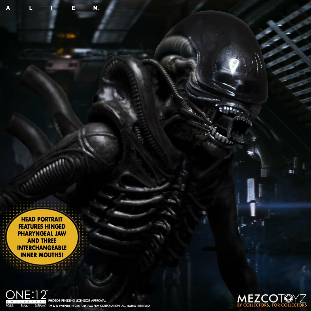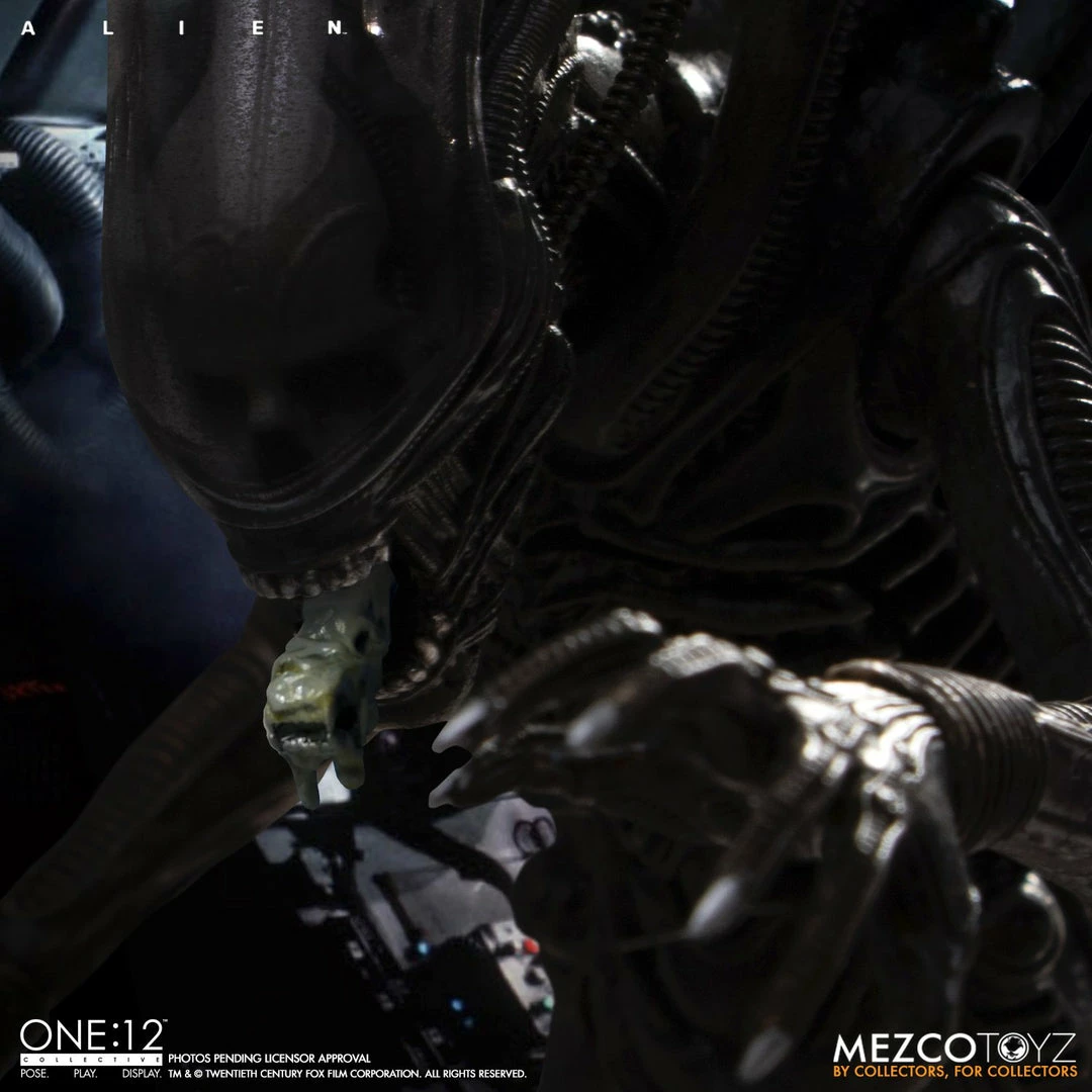 Alien is fully loaded with film-accurate accessories including a coiled Facehugger that can fit over the heads of most other One:12 Collective figures, an open Facehugger, a Chestburster, and an open and closed Ovomorph egg.Â