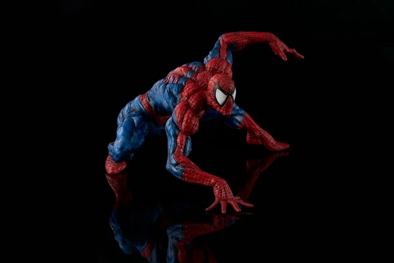 Next in Sentinel’s Sofbinal figure line is Spider-Man, presented in his iconic red and blue suit. Spider-Man is posed in a crouching position, ready to burst into action at any moment.