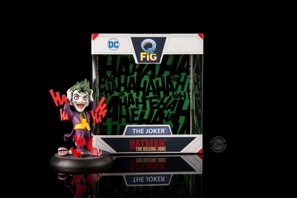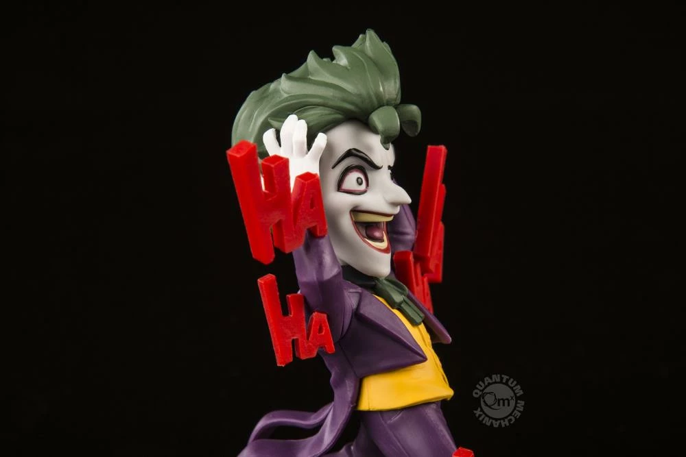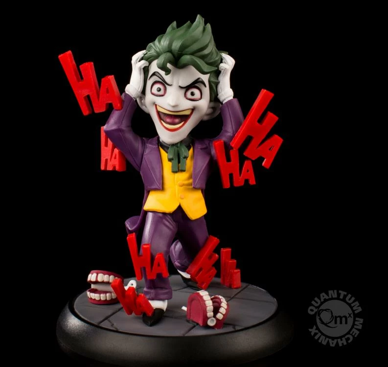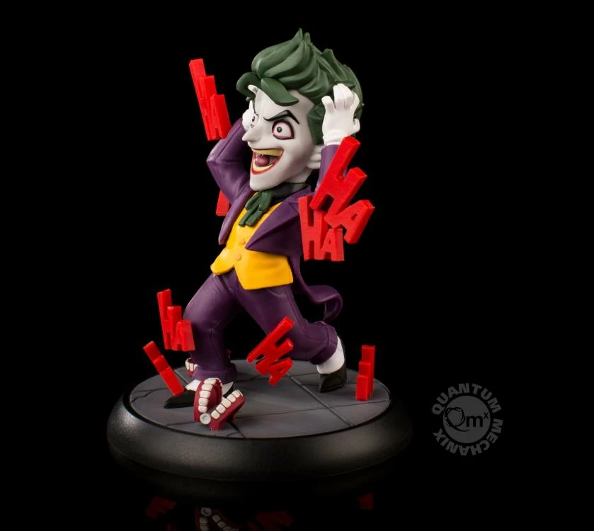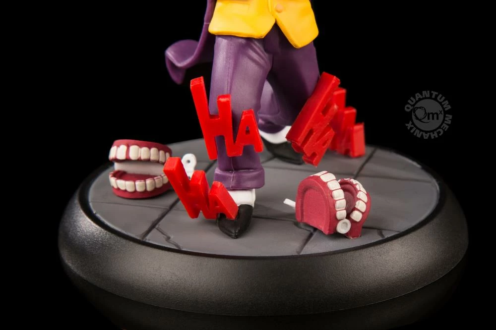 Based on the Joker as depicted in”The Killing Joke” by Alan Moore, the Q-Fig shows The Clown Prince of Crime in his traditional purple suit surrounded by his favorite toys, the chattering teeth. His manic laughter comes to life around him as his expression perfectly captures his trickster madness, hands on the sides of his head as if to hold the crazy in.