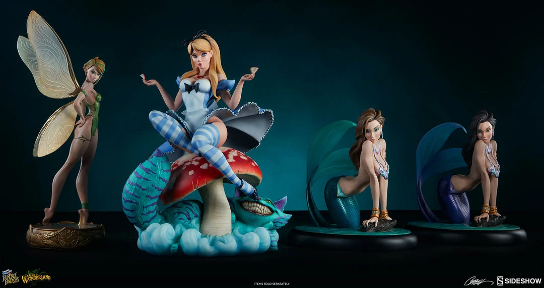 Working closely with Campbell, Sideshow has translated his iconic artwork into a stunning three-dimensional celebration of his reimagined classic fairytale characters like the Little Mermaid, Tinkerbell, and Alice in Wonderland.