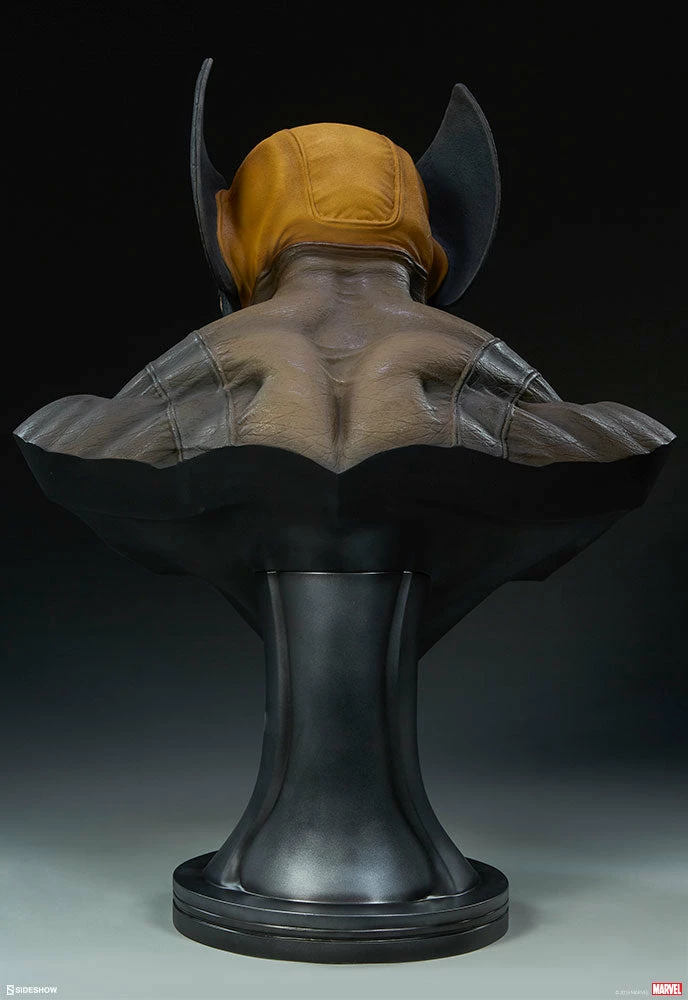 Sculpted with incredible lifelike textures and detail, the fiberglass Wolverine Life-Size Bust depicts the hero clad in his brown and yellow costume with his iconic cowl and white eyes. His muscular shoulders give Wolverine an added presence as if he could leap off the stand and start slashing with a quick SNIKT!
