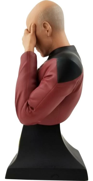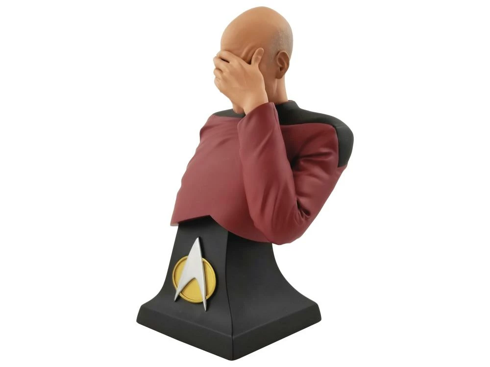 Presenting the SDCC 2020 Exclusive Captain Jean-Luc Picard “Facepalm” Mini Bust Paperweight from Icon Heroes! This collectible features Captain Picard executing the hilariously famous facepalm maneuver, a perfect symbol for what many are feeling in the year 2020.