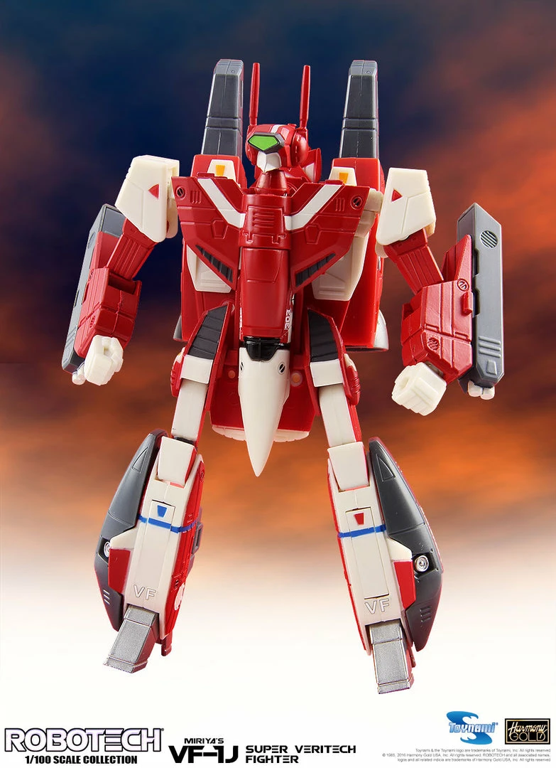 This Robotech Miriya’s 1:100 Scale VF-1J Super Veritech Action Figure comes fully equipped with a Super Veritech pack! The VF-1J Action Figure stands approximately 6-inches tall, is fully articulated, and can be converted into three modes: Fighter, Guardian, or Battloid.