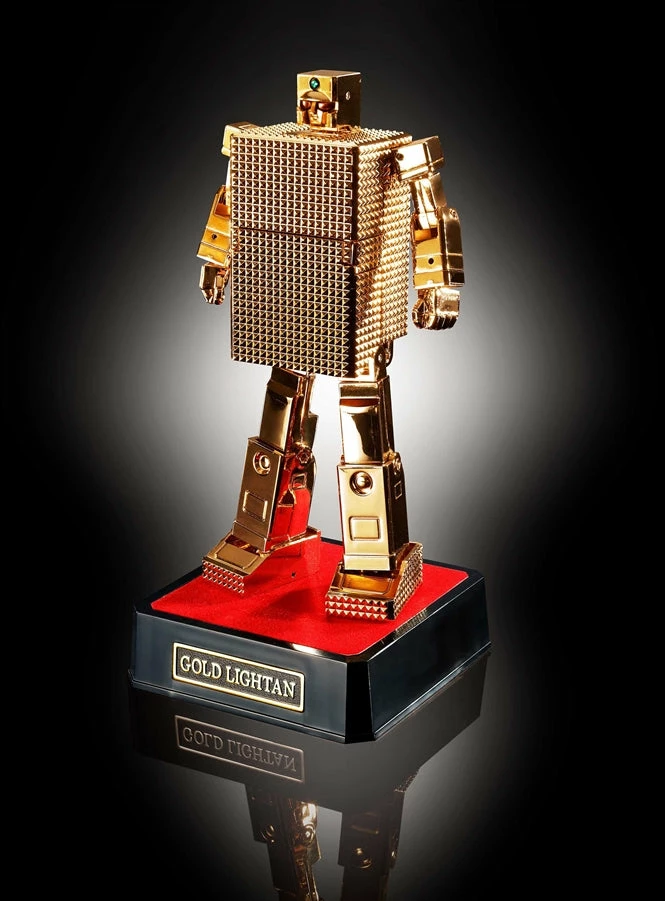 The legendary Gold Lightan returns with luxurious 24k gold plating! A re-release of the figure previously chromed in 18k gold, now the famed “crystal cut” body pattern shimmers even more gorgeously. Gold Lightan transforms from a lighter shape into a robot!