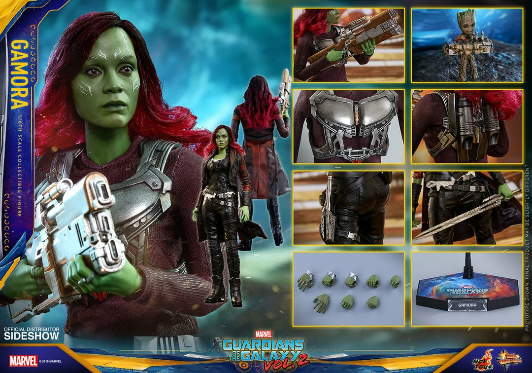 - A newly painted head sculpt with an authentic and detailed likeness of Zoe Saldana as Gamora in Guardians of the Galaxy Vol. 2