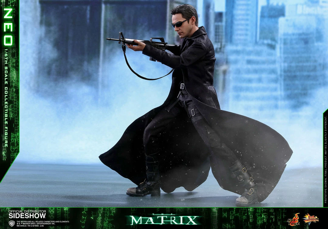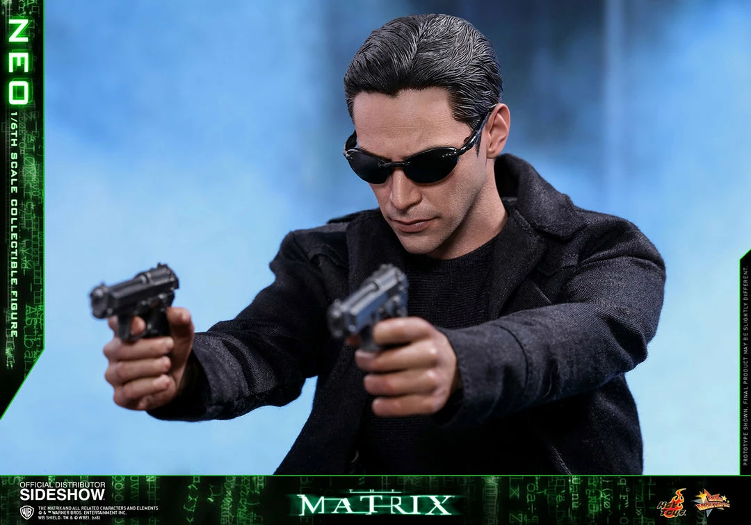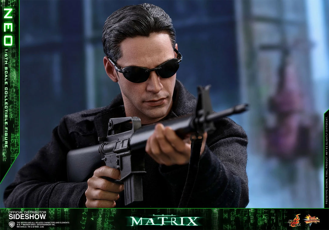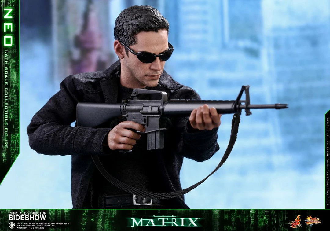 Sideshow and Hot Toys are very excited to present the highly anticipated 1/6th scale Neo collectible figure from the award-winning science fiction film The Matrix. With meticulous and careful craftsmanship, the very stylish sixth scale figure features a newly developed head sculpt highlighting a stunning likeness of Keanu Reeves as Neo in the movie, the signature form-fitting outfit and long coat with sophisticated tailoring, lots of guns including assault rifles, various types of submachine guns, and pistols, the iconic sunglasses, and a specially designed dynamic figure stand!