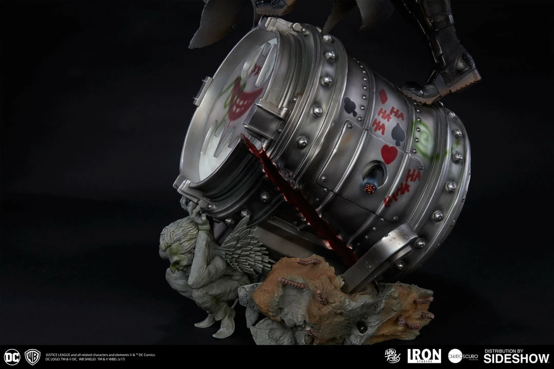 Sideshow and Iron Studios are proud to present the Batman (Black Edition) Prime Scale Statue. Produced with concept and art developed by Ivan Reis (DC Comics official artist) of Chiaroscuro Studios. Exclusively sold at Sideshow and Iron Studios Concept Store, this polystone statue is hand-painted and features two heads with interchangeable mouths, interchangeable hands, the Joker gargoyle, and an LED light-up bat signal base.