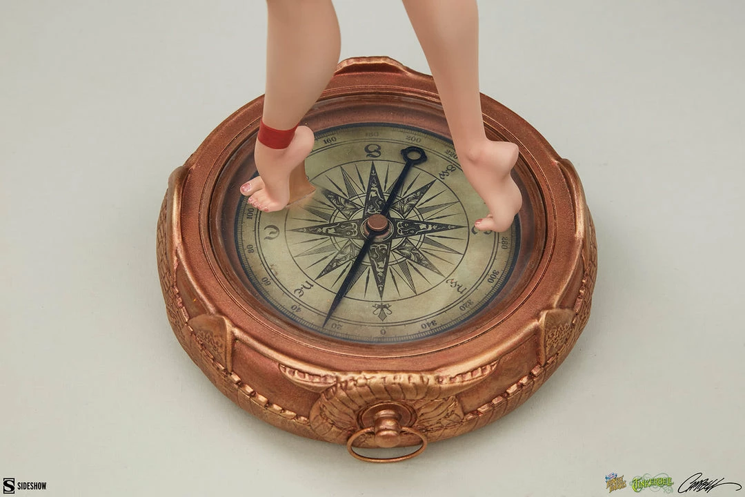 Tinkerbell stands 12” tall, strutting atop an intricate Neverland compass base that points the way to adventure. Detailed twin crocodiles are carved into the bronze-colored instrument, which has a realistic clear face beneath Tink’s delicate feet.