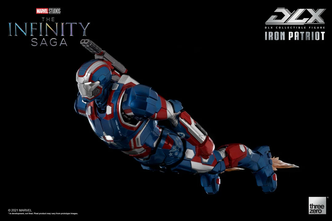 Threezero’s popular new DLX series based on characters from Marvel Studios’ The Infinity Saga continues with the DLX Iron Patriot as our next release. This fully-articulated collectible figure stands at 6.9” (~17.5cm) tall and is constructed of Threezero’s renowned DLX die-cast system with over 48 points of articulation.